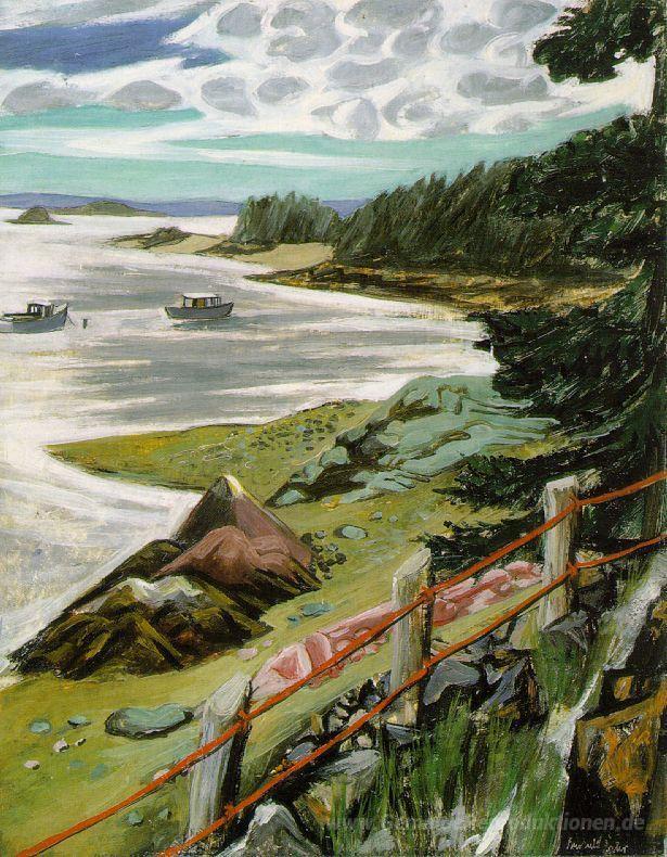 Wir bieten Ihnen eine handgefertigte Reproduktion auf Leinwand des berühmten Kunstwerks 'Red Kabel' von Fairfield Porter, aus dem Reproduktionsmuseum.