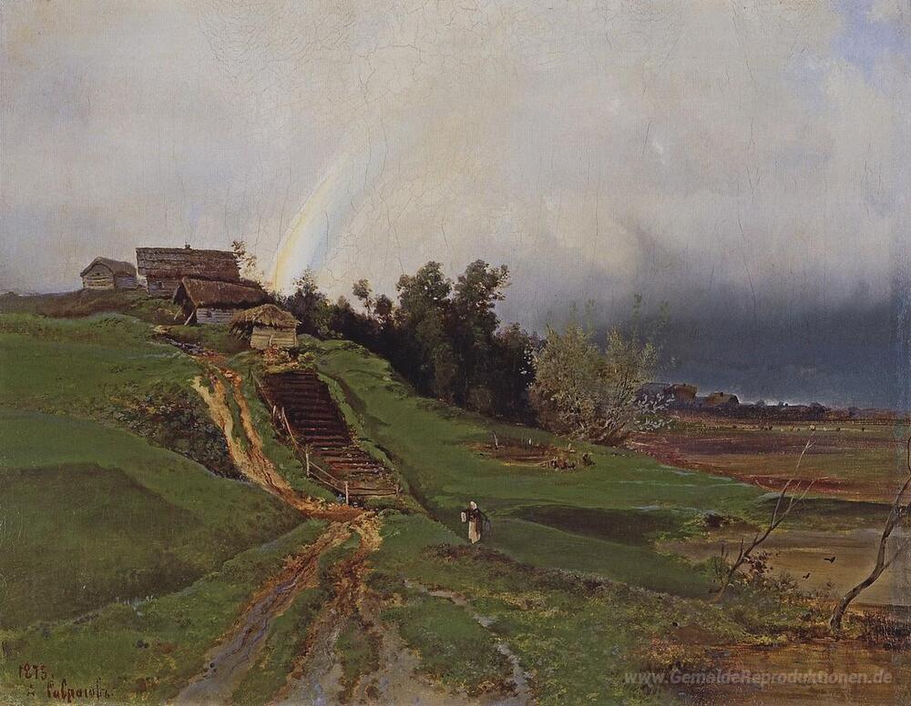 Wir bieten Ihnen eine handgefertigte Reproduktion auf Leinwand des berühmten Kunstwerks 'Regenbogen' von Aleksey Savrasov, aus dem Reproduktionsmuseum.