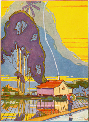 Wir bieten Ihnen eine handgefertigte Reproduktion auf Leinwand des berühmten Kunstwerks 'Reisfelder' von Arman Manookian, aus dem Reproduktionsmuseum.
