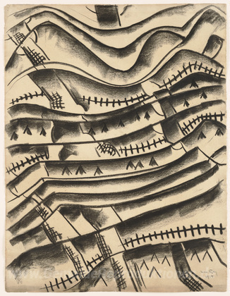 Wir bieten Ihnen eine handgefertigte Reproduktion auf Leinwand des berühmten Kunstwerks 'Ridgefield Landschaft' von Man Ray, aus dem Reproduktionsmuseum.