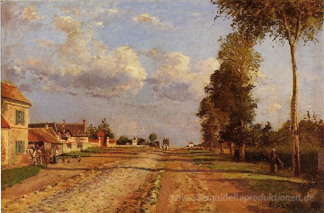 Wir bieten Ihnen eine handgefertigte Reproduktion auf Leinwand des berühmten Kunstwerks 'Road to Racquencourt' von Camille Pissarro, aus dem Reproduktionsmuseum.