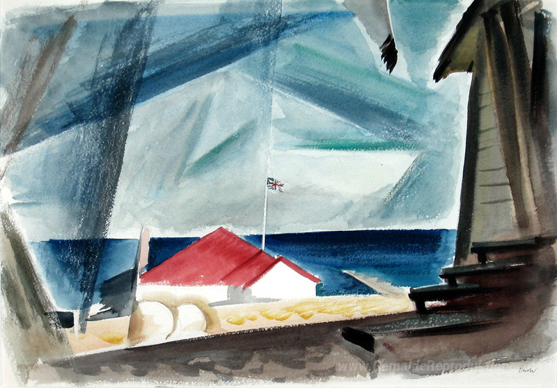Wir bieten Ihnen eine handgefertigte Reproduktion auf Leinwand des berühmten Kunstwerks 'Rot Weiß Blau' von Jack Bush, aus dem Reproduktionsmuseum.