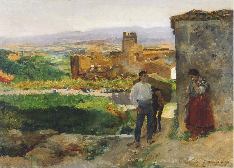 Wir bieten Ihnen eine handgefertigte Reproduktion auf Leinwand des berühmten Kunstwerks 'Ruinen von Bunol' von Joaquín Sorolla, aus dem Reproduktionsmuseum.
