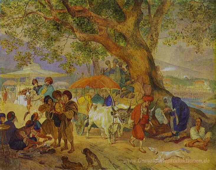 Willkommen in unserer exklusiven Sammlung von Ölgemälden, wo Kunst und Leidenschaft aufeinander treffen. Eines unserer herausragenden Werke ist Süße Waters bei Konstantinopel, geschaffen von dem meisterhaften Künstler Karl Bryullov. Bryullov, ein wegweisender Vertreter der russischen Romantik, kombiniert technisches Können mit emotionaler Tiefe, wobei er das Spiel von Licht und Schatten meisterhaft beherrscht. Seine Kunstwerke sind bekannt für ihre lebendige Farbpalette und detailreiche Darstellung, die den Betrachter in eine andere Welt entführen.
