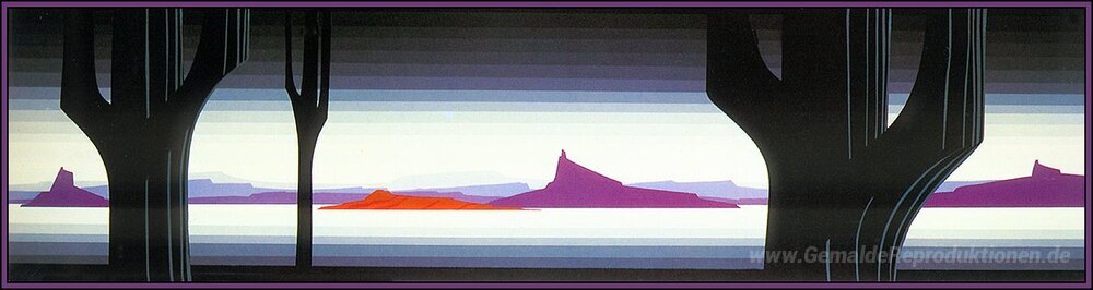 Wir bieten Ihnen eine handgefertigte Reproduktion auf Leinwand des berühmten Kunstwerks 'Saguaro' von Eyvind Earle, aus dem Reproduktionsmuseum.