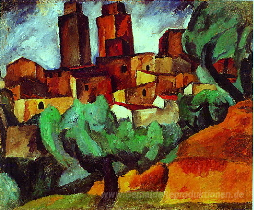 Wir bieten Ihnen eine handgefertigte Reproduktion auf Leinwand des berühmten Kunstwerks 'San Gimignano' von Pyotr Konchalovsky, aus dem Reproduktionsmuseum.