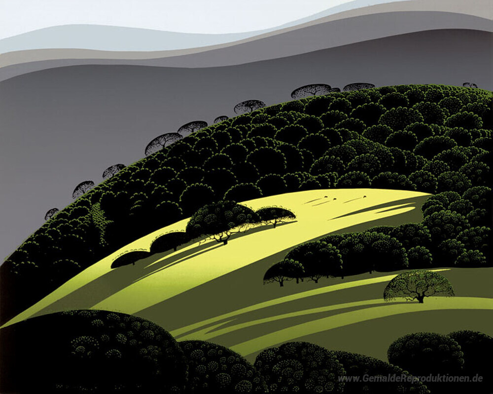 Willkommen in der faszinierenden Welt der Ölgemälde, wo visuelle Poesie und Handwerkskunst aufeinandertreffen. Unsere Kollektion umfasst Meisterwerke wie Santa Ynez Foothills von dem renommierten Künstler Eyvind Earle, der für seinen einzigartigen Stil und die Verwendung lebendiger Farben bekannt ist. Earle, ein Meister des Detailreichtums, fängt die natürliche Schönheit der Landschaft in seinen Arbeiten ein und verleiht jedem Bild eine besondere Atmosphäre.