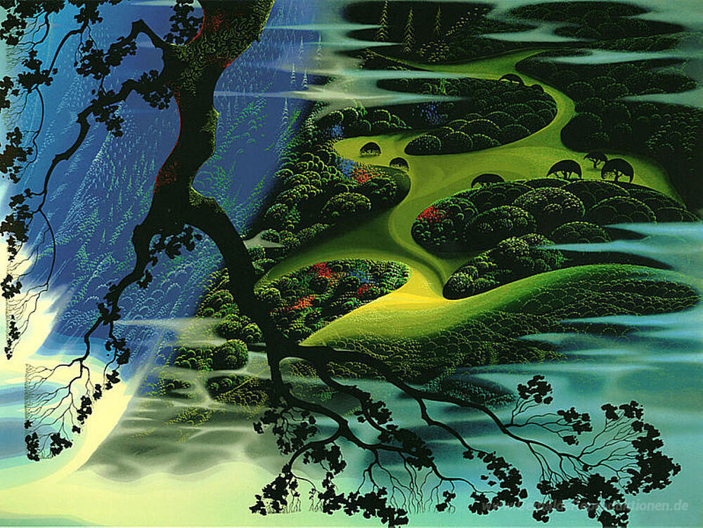 Willkommen in der faszinierenden Welt der Ölgemälde, wo Kunst und Emotionen aufeinandertreffen. Unsere Kollektion präsentiert Meisterwerke wie Schönheit Breaks at Dawn, erschaffen von dem legendären Künstler Eyvind Earle. Earle, bekannt für seine einzigartigen Landschaften und seine innovative Farbpalette, schafft in jedem Werk eine Atmosphäre von Ruhe und Majestät, die den Betrachter in eine andere Welt entführt.