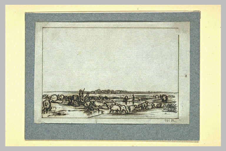 Wir bieten Ihnen eine handgefertigte Reproduktion auf Leinwand des berühmten Kunstwerks 'Schafherde auf der Weide' von Theodore Rousseau, aus dem Reproduktionsmuseum.