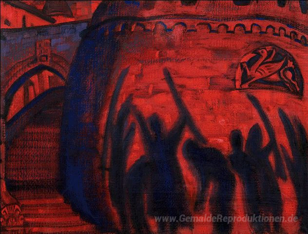 Wir bieten Ihnen eine handgefertigte Reproduktion auf Leinwand des berühmten Kunstwerks 'Schatten' von Nicholas Roerich, aus dem Reproduktionsmuseum.