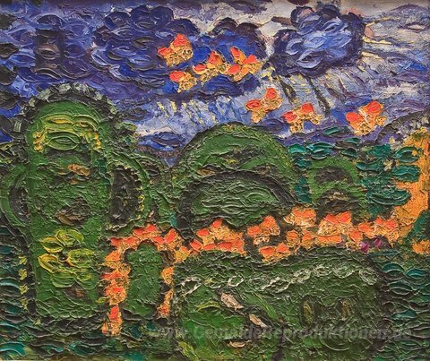 Wir bieten Ihnen eine handgefertigte Reproduktion auf Leinwand des berühmten Kunstwerks 'Schmetterlings-Tanz-' von Ion Tuculescu, aus dem Reproduktionsmuseum.