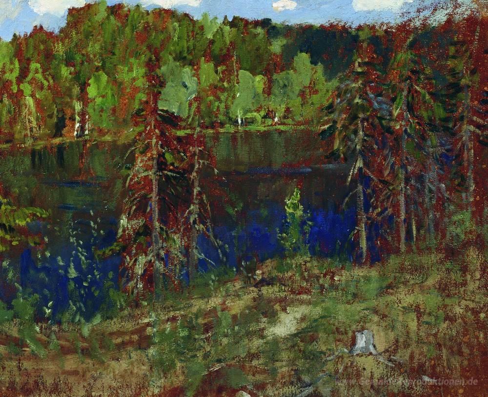 Wir bieten Ihnen eine handgefertigte Reproduktion auf Leinwand des berühmten Kunstwerks 'See im Wald' von Isaac Levitan, aus dem Reproduktionsmuseum.