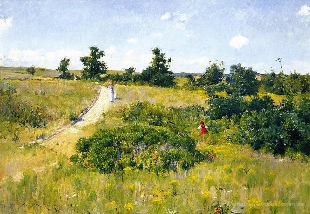 Willkommen in unserer Welt der Ölgemälde, wo zeitlose Kunstwerke Ihre Wohnräume mit Farbe und Emotion bereichern. Eines unserer herausragenden Stücke ist Shinnecock Landschaft mit Figuren des renommierten Künstlers William Merritt Chase. Dieses Meisterwerk verkörpert die zarten Nuancen der Natur und die menschliche Präsenz, eingefangen in einem harmonischen Zusammenspiel von Licht und Schatten. Chase, bekannt für seine impressionistischen Techniken, vermittelt mit jedem Pinselstrich die Lebendigkeit der Landschaft und die Atmosphäre des Moments.