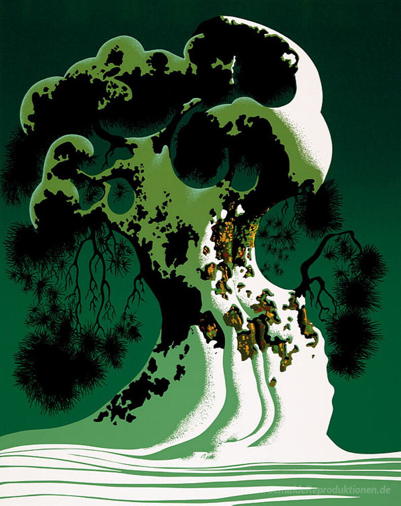 Die künstlerischen Techniken von Eyvind Earle sind geprägt von detaillierten Aquarellen und kräftigen Ölfarben, die zusammen eine harmonische Komposition erzeugen. Das Gemälde Snow Covered Bonsai lässt sich perfekt in moderne Wohnräume integrieren und verleiht jedem Raum eine Atmosphäre der Ruhe und Gelassenheit. Entdecken Sie, wie dieses Meisterwerk die Stimmung Ihres Zuhauses verwandeln kann.