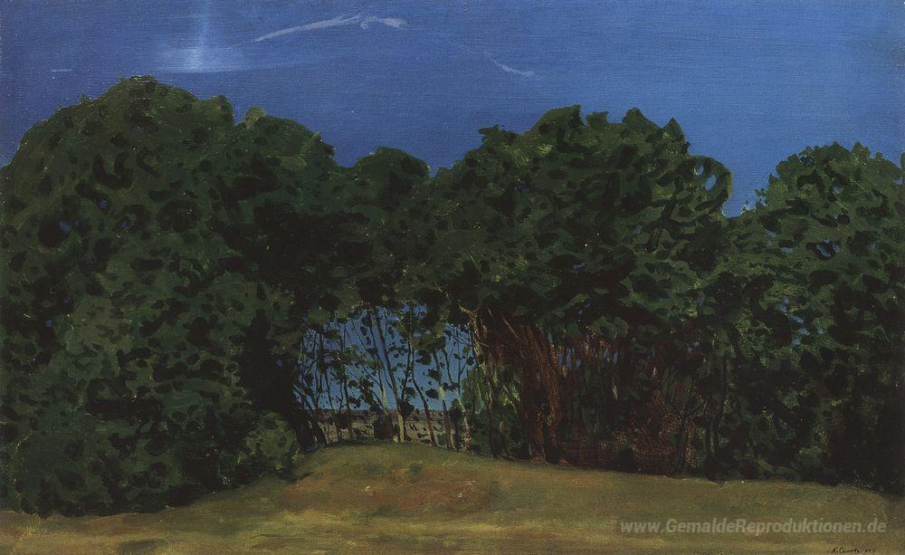 Wir bieten Ihnen eine handgefertigte Reproduktion auf Leinwand des berühmten Kunstwerks 'Sommerlandschaft' von Konstantin Somov, aus dem Reproduktionsmuseum.