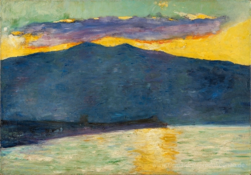 Wir bieten Ihnen eine handgefertigte Reproduktion auf Leinwand des berühmten Kunstwerks 'Sonnenuntergang am Italienischen See (Oberitalien)' von Lesser Ury, aus dem Reproduktionsmuseum.