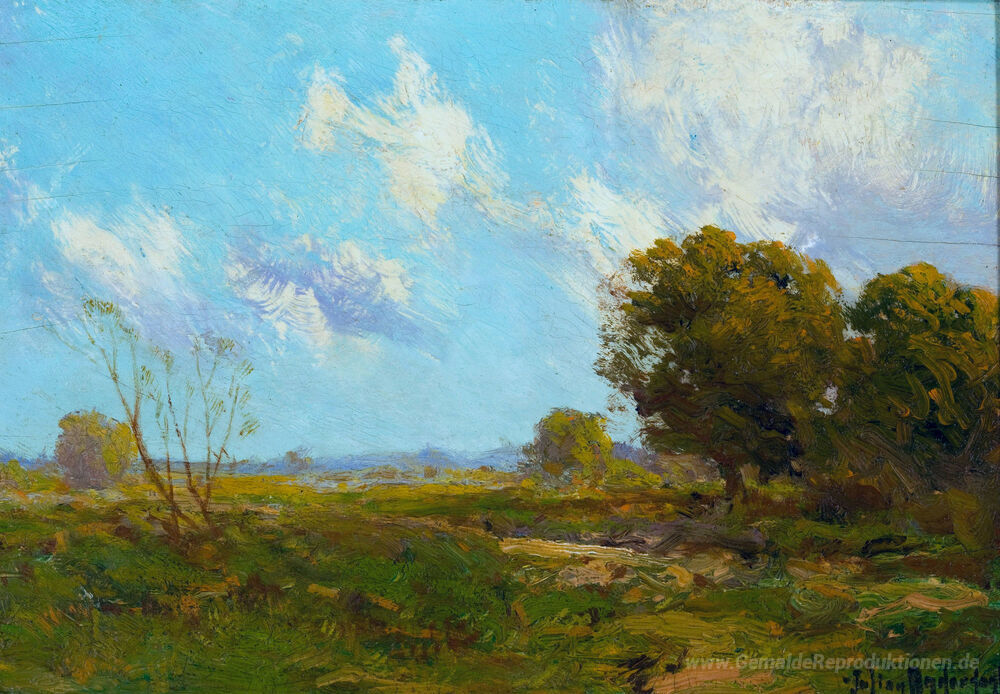 Willkommen in der faszinierenden Welt der Ölgemälde, wo Inspiration und Emotion in jedem Pinselstrich lebendig werden. Jedes Kunstwerk erzählt eine einzigartige Geschichte, und das Ölgemälde Spätnachmittag von Robert Julian Onderdonk ist keine Ausnahme. Onderdonk, bekannt für seine Meisterschaft in der Landschaftsmalerei, verwendet innovative Techniken, um das Licht und die Farben der Natur einzufangen und in beeindruckenden Kompositionen zu präsentieren.