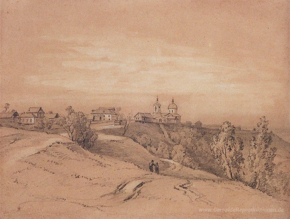 Wir bieten Ihnen eine handgefertigte Reproduktion auf Leinwand des berühmten Kunstwerks 'Sparrow Hills in der Nähe von Moskau' von Aleksey Savrasov, aus dem Reproduktionsmuseum.