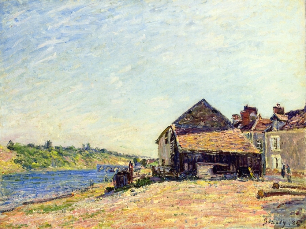 Wir bieten Ihnen eine handgefertigte Reproduktion auf Leinwand des berühmten Kunstwerks 'St. Mammes' von Alfred Sisley, aus dem Reproduktionsmuseum.