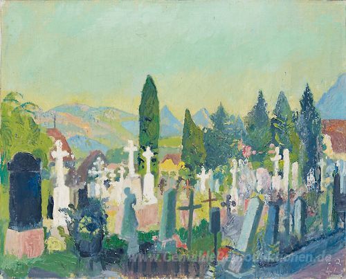Wir bieten Ihnen eine handgefertigte Reproduktion auf Leinwand des berühmten Kunstwerks 'Stans, Friedhof' von Cuno Amiet, aus dem Reproduktionsmuseum.