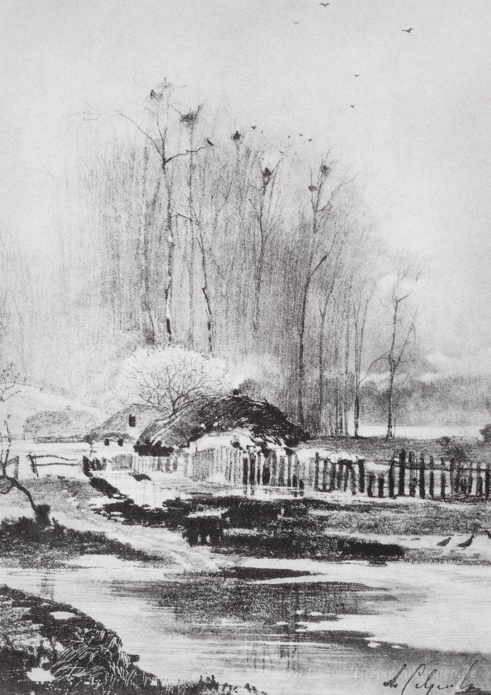 Wir bieten Ihnen eine handgefertigte Reproduktion auf Leinwand des berühmten Kunstwerks 'Stark schmilzt' von Aleksey Savrasov, aus dem Reproduktionsmuseum.