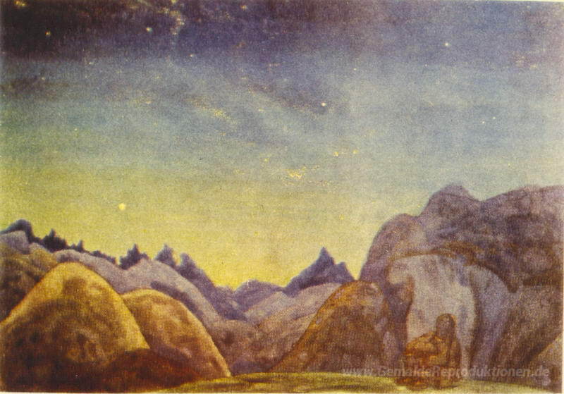 Wir bieten Ihnen eine handgefertigte Reproduktion auf Leinwand des berühmten Kunstwerks 'Sternenhimmel' von Nicholas Roerich, aus dem Reproduktionsmuseum.