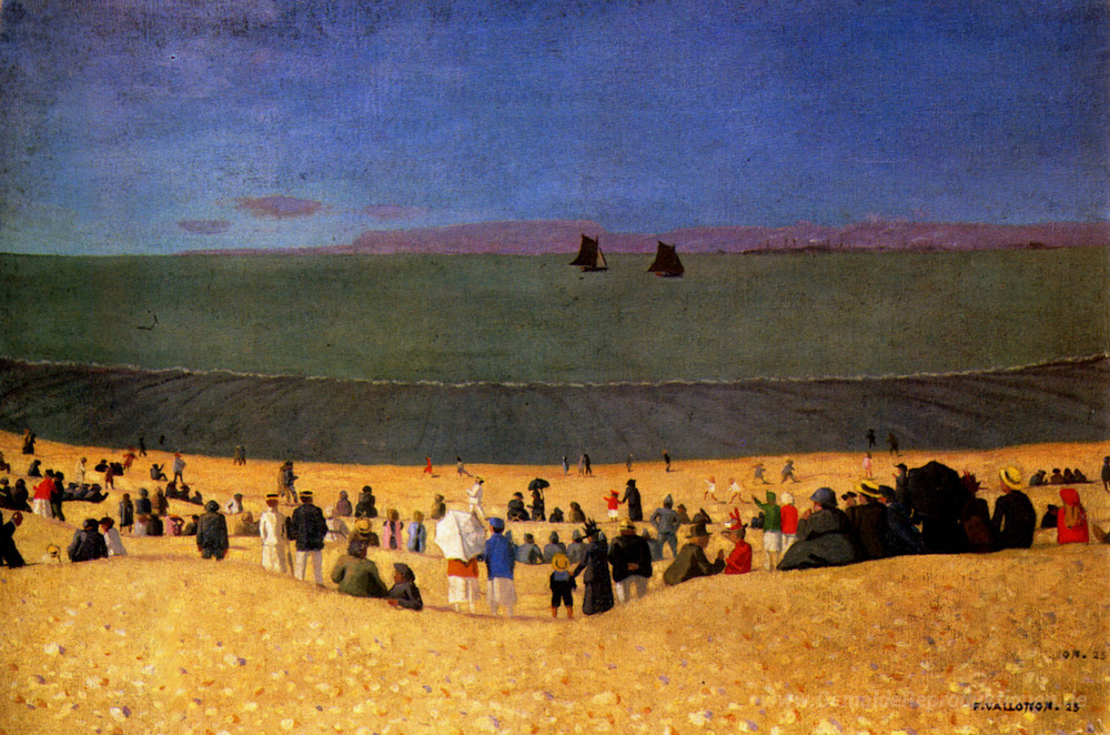 Wir bieten Ihnen eine handgefertigte Reproduktion auf Leinwand des berühmten Kunstwerks 'Strand mit Honfleur Gold Beach mit Multitude off Zahlen' von Felix Vallotton , aus dem Reproduktionsmuseum.