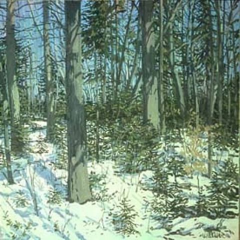 Wir bieten Ihnen eine handgefertigte Reproduktion auf Leinwand des berühmten Kunstwerks 'Study für Little Fichte' von Neil Welliver, aus dem Reproduktionsmuseum.