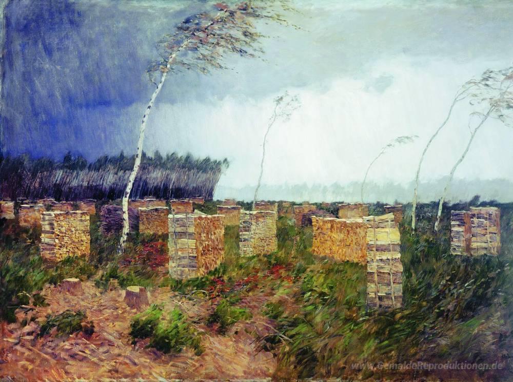 Willkommen in der faszinierenden Welt der Ölgemälde, wo jedes Kunstwerk eine Geschichte erzählt und Emotionen weckt. Unser Fokus liegt auf herausragenden Künstlern wie Isaac Levitan, der für seine meisterhafte Fähigkeit bekannt ist, die Schönheit der Natur in seinen Werken einzufangen. Sein ikonisches Gemälde Sturm. Regen. ist ein beeindruckendes Beispiel für den Einsatz atmosphärischer Farben und dynamischer Pinselstriche, die das Spiel von Licht und Schatten eindrucksvoll darstellen.