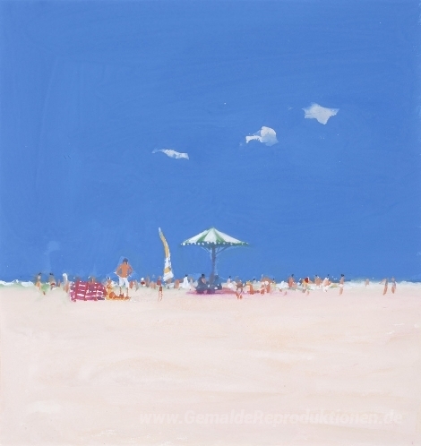 Wir bieten Ihnen eine handgefertigte Reproduktion auf Leinwand des berühmten Kunstwerks 'Summer Beach I' von John Miller, aus dem Reproduktionsmuseum.