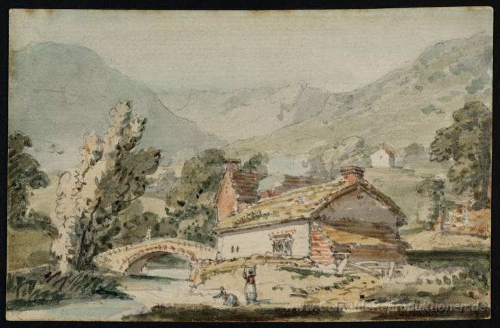 Wir bieten Ihnen eine handgefertigte Reproduktion auf Leinwand des berühmten Kunstwerks 'Szene in den Lake District, in der Nähe von Buttermere' von Thomas Girtin, aus dem Reproduktionsmuseum.