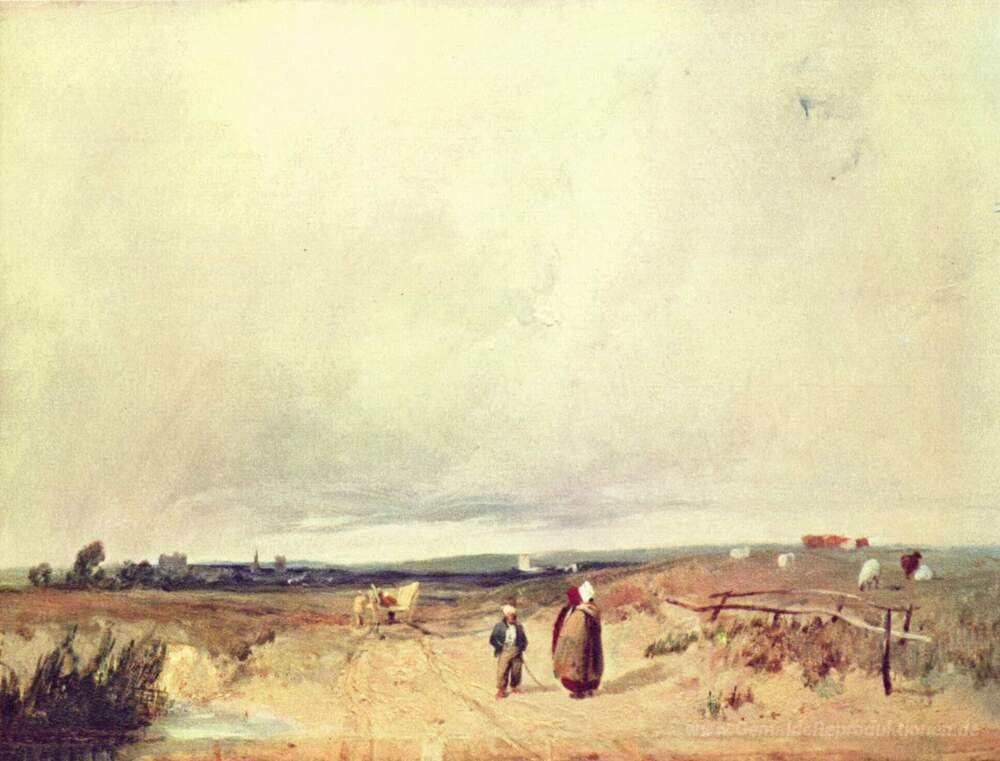 Wir bieten Ihnen eine handgefertigte Reproduktion auf Leinwand des berühmten Kunstwerks 'Szene in der Normandie' von Richard Parkes Bonington, aus dem Reproduktionsmuseum.