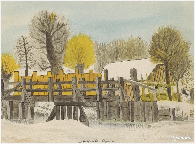 Wir bieten Ihnen eine handgefertigte Reproduktion auf Leinwand des berühmten Kunstwerks 'Talaychev Brücke' von Ivan Generalic, aus dem Reproduktionsmuseum.