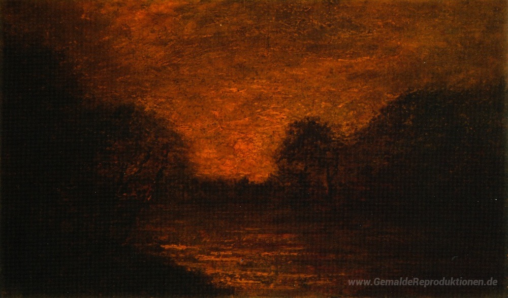 Wir bieten Ihnen eine handgefertigte Reproduktion auf Leinwand des berühmten Kunstwerks 'Teich im Mondschein' von Albert Pinkham Ryder, aus dem Reproduktionsmuseum.