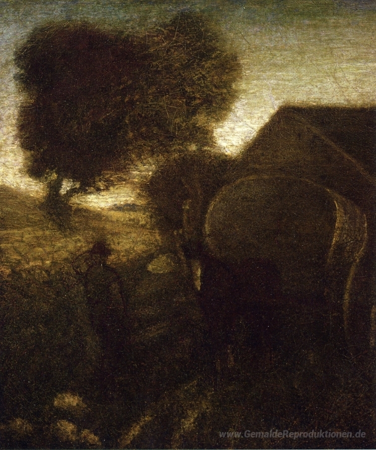 Wir bieten Ihnen eine handgefertigte Reproduktion auf Leinwand des berühmten Kunstwerks 'The Farmyard' von Albert Pinkham Ryder, aus dem Reproduktionsmuseum.