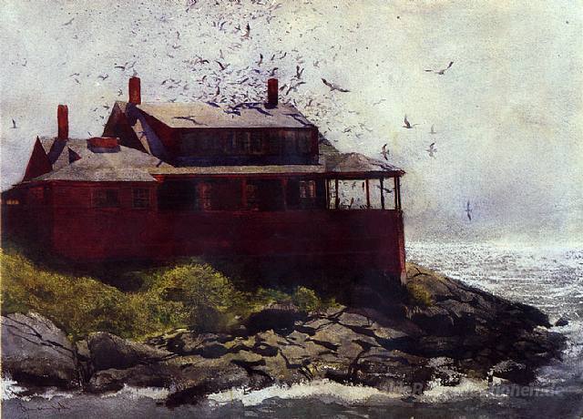 Wir bieten Ihnen eine handgefertigte Reproduktion auf Leinwand des berühmten Kunstwerks 'The Red House' von Jamie Wyeth, aus dem Reproduktionsmuseum.