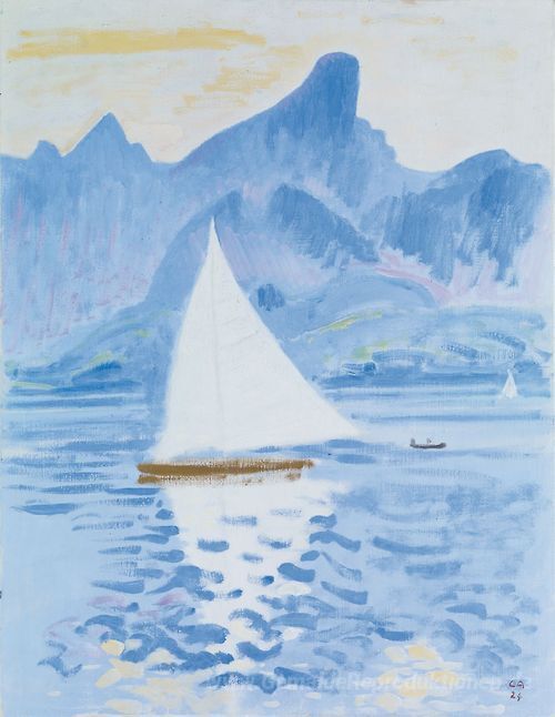 Wir bieten Ihnen eine handgefertigte Reproduktion auf Leinwand des berühmten Kunstwerks 'Thunersee mit Stockhorn' von Cuno Amiet, aus dem Reproduktionsmuseum.