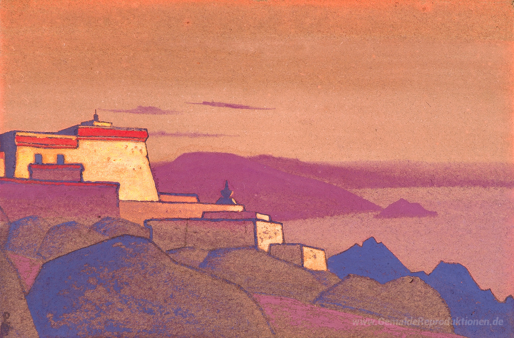 Wir bieten Ihnen eine handgefertigte Reproduktion auf Leinwand des berühmten Kunstwerks 'Tibet. Kloster Gelug-pa.' von Nicholas Roerich, aus dem Reproduktionsmuseum.