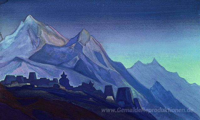 Wir bieten Ihnen eine handgefertigte Reproduktion auf Leinwand des berühmten Kunstwerks 'Tibet' von Nicholas Roerich, aus dem Reproduktionsmuseum.