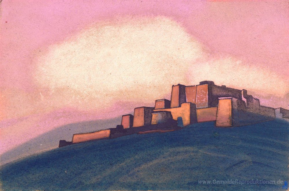 Wir bieten Ihnen eine handgefertigte Reproduktion auf Leinwand des berühmten Kunstwerks 'Tibetian Festung' von Nicholas Roerich, aus dem Reproduktionsmuseum.