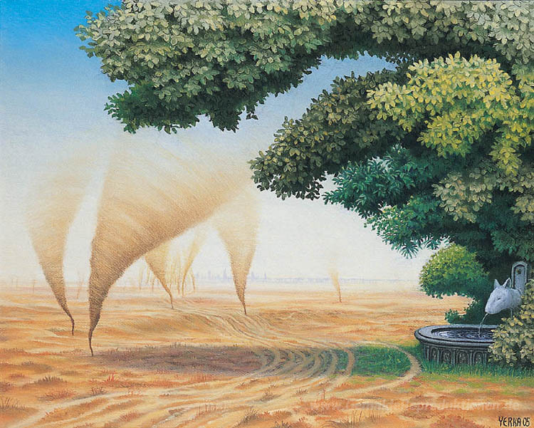 Willkommen in der inspirierenden Welt der Ölgemälde, wo Kunst und Emotionen miteinander verschmelzen. Eines der herausragenden Werke in unserer Kollektion ist Tornado Alley von dem talentierten Künstler Jacek Yerka. Yerka ist bekannt für seine surrealen Landschaften, die den Betrachter in eine Traumwelt entführen. Durch seine einzigartige Technik, bei der er lebendige Farben und komplexe Details vereint, schafft er Kunstwerke, die nicht nur visuell beeindrucken, sondern auch tiefgründige Geschichten erzählen.
