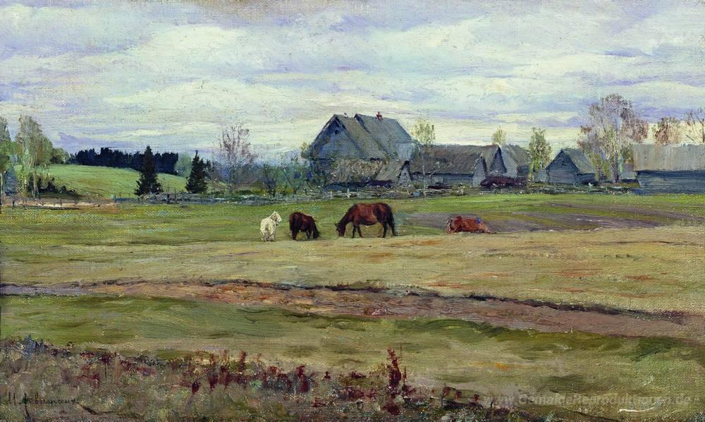 Wir bieten Ihnen eine handgefertigte Reproduktion auf Leinwand des berühmten Kunstwerks 'Trüben Tag' von Isaac Levitan, aus dem Reproduktionsmuseum.
