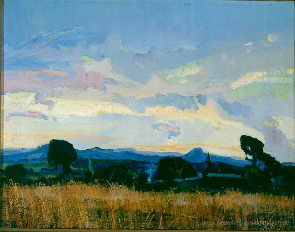 Wir bieten Ihnen eine handgefertigte Reproduktion auf Leinwand des berühmten Kunstwerks 'Transvaal Abend (Nelspruit)' von Pieter Wenning, aus dem Reproduktionsmuseum.