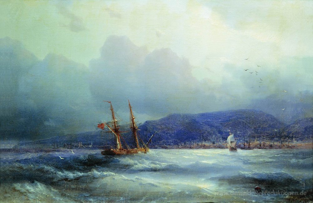 Wir bieten Ihnen eine handgefertigte Reproduktion auf Leinwand des berühmten Kunstwerks 'Trapezunt aus dem Meer' von Ivan Aivazovsky, aus dem Reproduktionsmuseum.