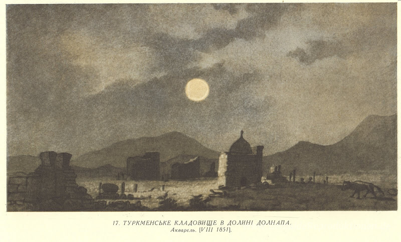 Wir bieten Ihnen eine handgefertigte Reproduktion auf Leinwand des berühmten Kunstwerks 'Turkmenischen Friedhof in Dolnapa Tal' von Taras Shevchenko, aus dem Reproduktionsmuseum.