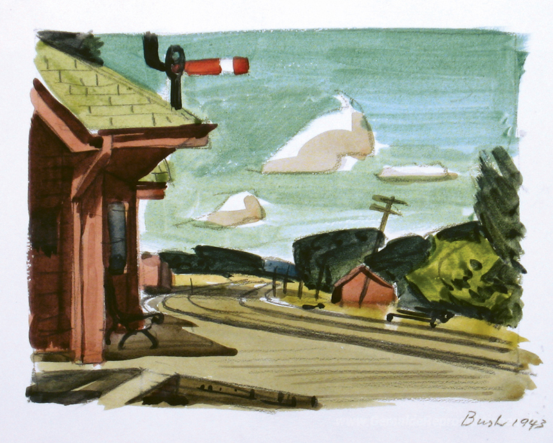 Wir bieten Ihnen eine handgefertigte Reproduktion auf Leinwand des berühmten Kunstwerks 'Untitled, Bahnhof' von Jack Bush, aus dem Reproduktionsmuseum.