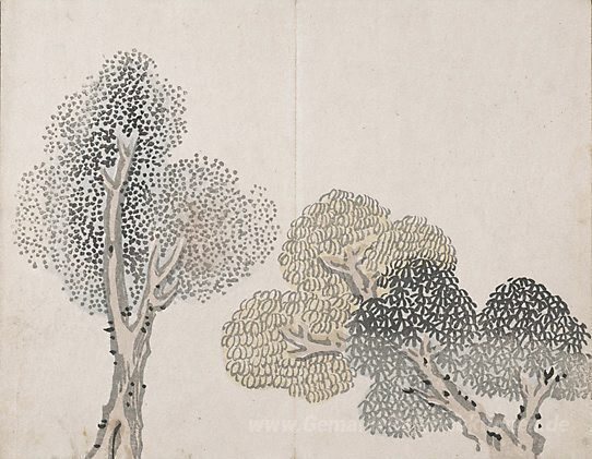 Wir bieten Ihnen eine handgefertigte Reproduktion auf Leinwand des berühmten Kunstwerks 'Untitled (ein Baum mit kleinen Blättern)' von Ike no Taiga, aus dem Reproduktionsmuseum.