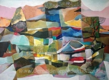 Wir bieten Ihnen eine handgefertigte Reproduktion auf Leinwand des berühmten Kunstwerks 'Untitled (Landscape)' von Vicente Manansala, aus dem Reproduktionsmuseum.
