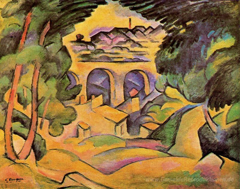 Wir bieten Ihnen eine handgefertigte Reproduktion auf Leinwand des berühmten Kunstwerks 'Viaduct bei Estaque' von Georges Braque, aus dem Reproduktionsmuseum.