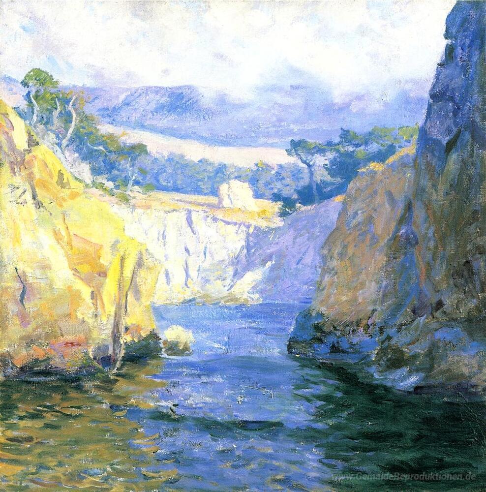 Wir bieten Ihnen eine handgefertigte Reproduktion auf Leinwand des berühmten Kunstwerks 'Vista von Point Lobos' von Guy Rose, aus dem Reproduktionsmuseum.